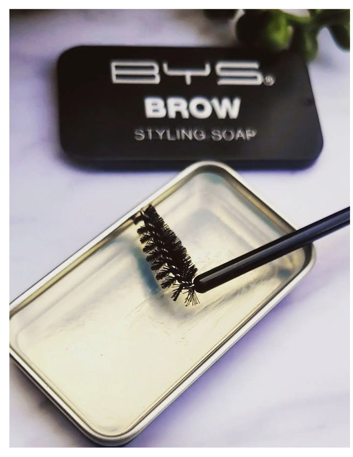 Fija tus cejas y mantenlas en su lugar con Brow Styling Soap de BYS Cosmetics. Es un producto imprescindible para peinarlas y darles una fijación fuerte que durara 24 horas. Sin color, 100% transparente, el cual garantiza que sea adecuado para cualquier color de cejas, sin dejar residuos. El Brow Styling Soap también incluye un mini cepillo en ángulo para una aplicación precisa y alojado en una cajita de lata.