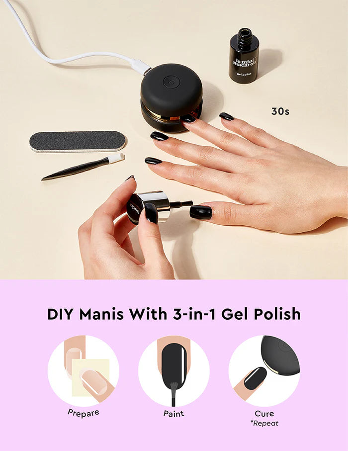 ¡El kit de manicura en gel Le Mini Macaron incluye todo lo que necesitas para una manicura en gel cuando quieras, donde quieras!