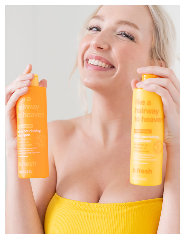 Un acondicionador ultra nutritivo para cabello seco y dañado por el calor que se siente como si hubiera estado excluido del cielo durante demasiado tiempo. Aceite de jojoba, aceite de frambuesa + manteca de mango reparan, nutren y tratan ese cabello.