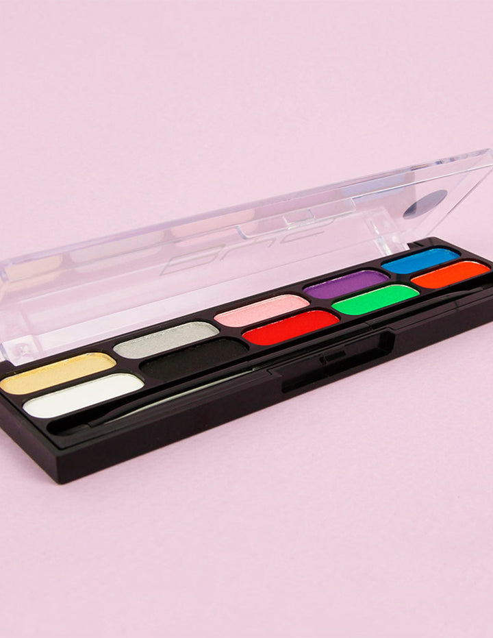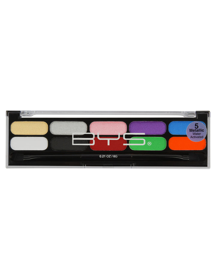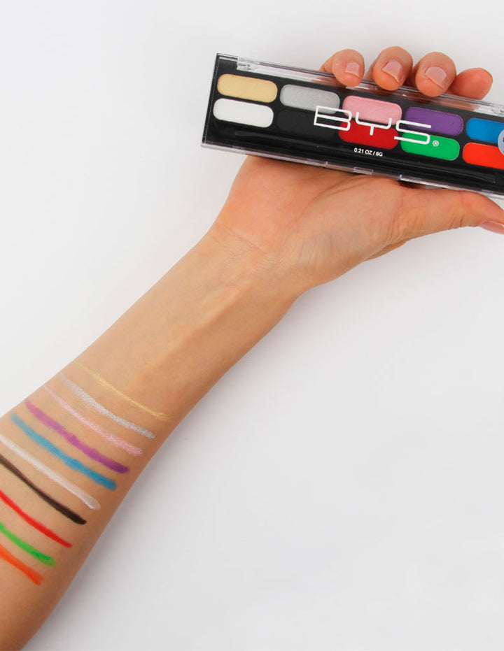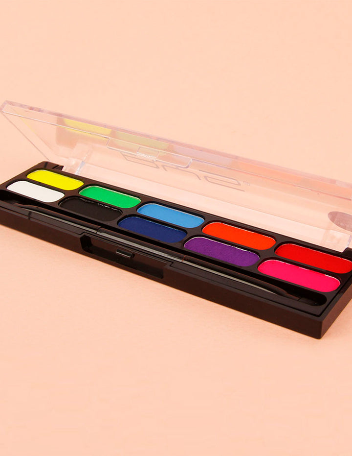 ¡Da vida a tus miradas con la Paleta de Sombras y delineadores que se activan con el agua. Esta paleta de 10 tonos brillantes te ayudará a crear combinaciones únicas. ¡Especialmente formulado para funcionar como sombra de ojos en polvo o delineador de ojos líquido! ¡Incluye una práctica brocha con punta en ángulo para que puedas maquillarte sobre la marcha!