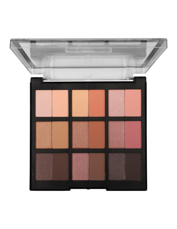 ¡La paleta nude definitiva! Trae nueve sombras mate y nueve con brillo en tonos neutros súper versátiles que van bien con cualquier tono de piel. Puedes crear looks naturales para el día a día o usar los tonos oscuros para un estilo más glam y elegante.