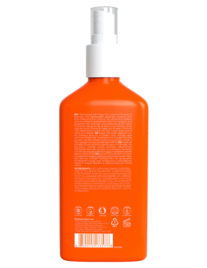 Formulado con aceite de argán, aceite de coco y bloqueadores de rayos UV, este desenredante liviano protege el cabello del calor y el sol mientras al mismo tiempo lo suaviza y lo nutre, fortalece el cabello, protege y preserva la intensidad y el brillo del color del cabello.