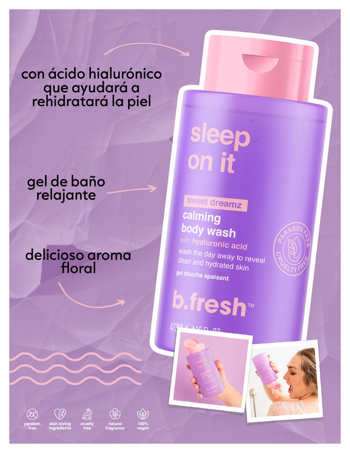 Soy un gel de baño calmante elaborado con una mezcla de ingredientes naturales que aman la piel y mejorado con ácido hialurónico para aumentar la hidratación, mientras que el aroma floral calmante calma los sentidos, todos listos para recuperarse.